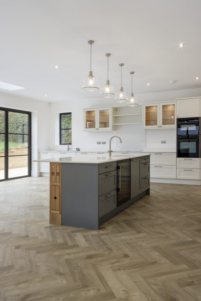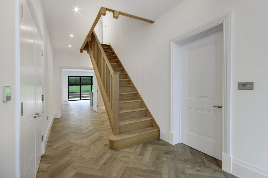 Following the demolition of the existing property, The Art of Living constructed a six bed, three storey new build property in a private road in Otford.  The design compromises all of the benefits of open plan living whilst also providing an independent home office suite to cater for all working options.